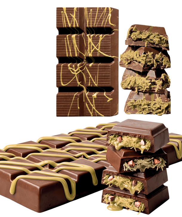 Indulge in the Butter Kunafa Dubai Chocolate Bar, where golden, crispy kunafa meets a rich buttery filling. Crafted with 44% milk chocolate, each bite delivers a smooth, decadent flavor with a perfect crunch. Ideal for personal indulgence or elegant gifting.