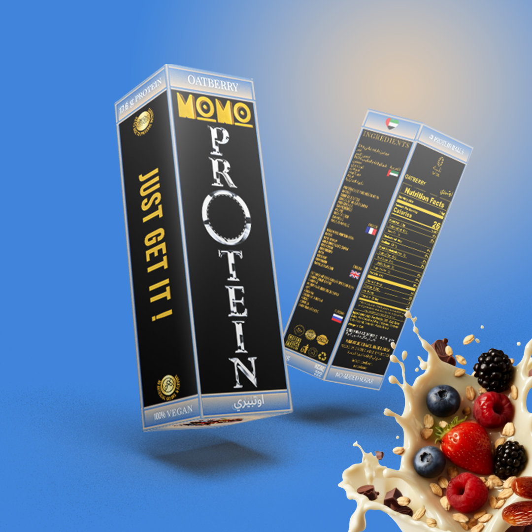 Discover the wholesome power of oats blended with vibrant berry notes in MOMO Protein Balls OATBERRY—a flavourful plant-based protein ball that combines cranberries, chickpeas, creamy vegan milk chocolate, and a touch of coconut for delicious, nutrient-dense energy. Produced fresh in the UAE, OATBERRY is vegan, gluten-free, contains no added sugar, and is as suitable for wellness as it is for comfort snacking.