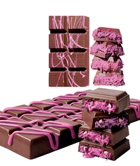 Delight in the Strawberry Kunafa Dubai Chocolate Bar, where golden, crispy kunafa meets a vibrant strawberry filling. Made with 44% milk chocolate, each bite bursts with fruity sweetness and a satisfying crunch—perfect for treating yourself or someone special.